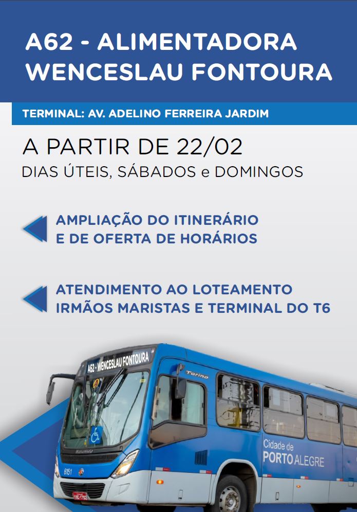 NOVOS HORÁRIOS E ITINERÁRIO DA LINHA A62, A PARTIR DE 22/02/2021.